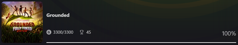 Ogólnie bieda ale nawet coś tam wbiłem od października. Grounded męczyłem w co-opie ostatnie 2 lata, bardzo przyjemna gierka.