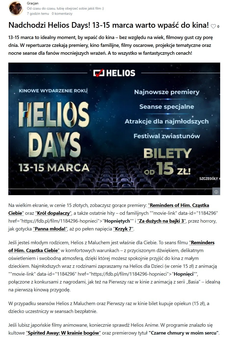 A zaczyna się od ,,Piątku 13-ego"... marca... XD. Wbita z waszej strony do Heliosa? Najlepsiejsze w tej ofercie jest to, że dają do emisji na ten event sporo anime, animacji, no i jakichś produkcji a'la ,,kino konesera" etc. Dobra nasza.- Ghost of Yōtei