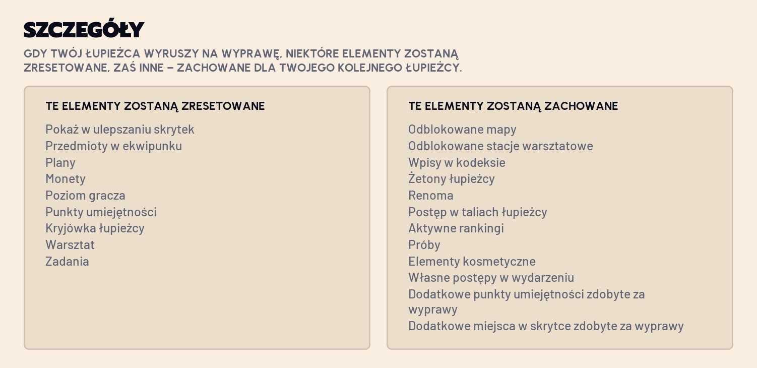 Chociaż z tej rozpiski sam już nie wiem, czy stacje warsztatowe zostają na odblokowanym levelu, bo obok jest napisane, że resetują całą kryjówkę...