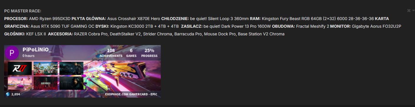 Jakoś tak spłynął po mnie ten remaster w momencie premiery - trochę miały na to wpływ wspomnienia z OG na x360 gdzie zatrzymałem się bodajże na chapterze 6. Cieszę się natomiast, ze dałem mu szanse, ta gra to czysty fun korytarzowe lokacje, brak systemów RPG, fabuła na którą nie zwracam kompletnie uwagi - normalnie uznałbym to za wady wielu tytułów, tutaj natomiast są to ogromne plusy. Tak przyjemnego ciachania i rozczłonkowywania wrogów nie bylo od dawna w giereczkowie. Jucha i kończyny latają w każdą stronę, a system walki wymaga przykucia uwagi do tego co dzieje sie na ekranie. Gram na poziomie trudności oczko wyżej od normalnego i dla mnie - casuala w świecie slasherow jest fajnie wyważone wyzwanie. Aktualnie chapter 13 i nie moge sie doczekać dalszego hayabusowania.