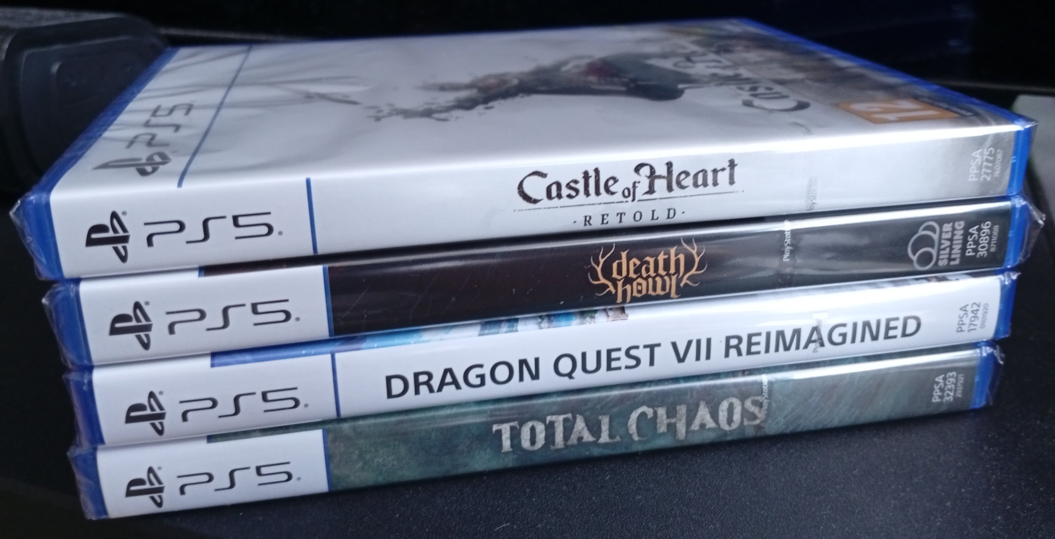 Dzisiejsza przesyłka od UNIBLO. Kilka niszowych produkcji - Castle of Heart Retold i death howl wyglądały interesująco, TOTAL CHAOS premierowo kupiony w cyfrze, ale chciałem mieć pudełeczko na półce, a do kompletu zupełnie nie-niszowe Dragon Quest VII Reimagined.