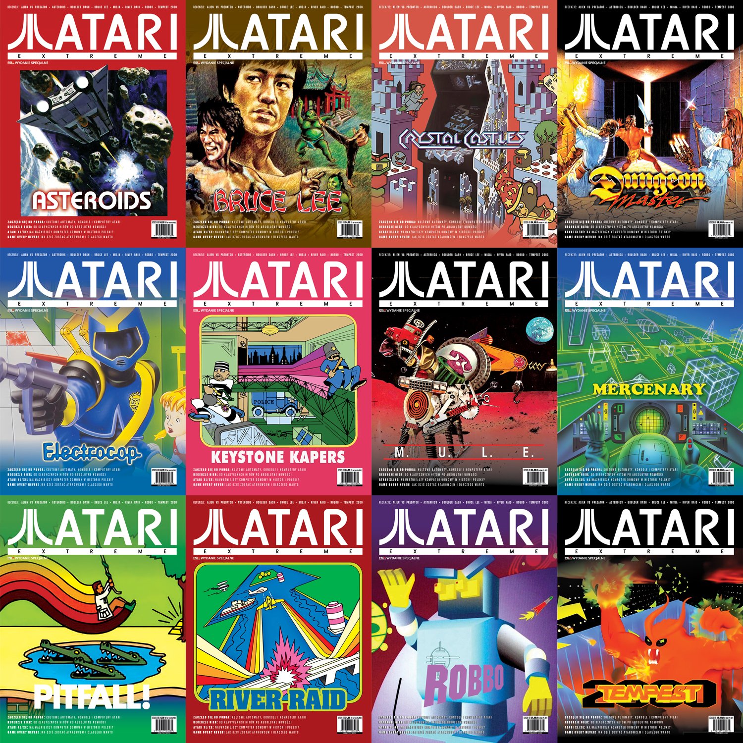 Atari Extreme - wydawnictwo specjalne redakcji magazynu PSX Extreme Przedsprzedaż w promocyjnej cenie 29,99 zł rozpocznie się 20 stycznia od ok. 20:00. Premiera wydania zaplanowana na 20 marca. Aktualnie trwa ankieta, w której wybieramy 6 okładek spośród 12 propozycji. Ankieta potrwa do soboty 17 stycznia do godziny 19:00. Asteroids Bruce Lee Crystal Castles Dungeon Master Electrocop Keystone Kapers M.U.L.E. Mercenary Pitfall! River Raid Robbo Tempest 2000