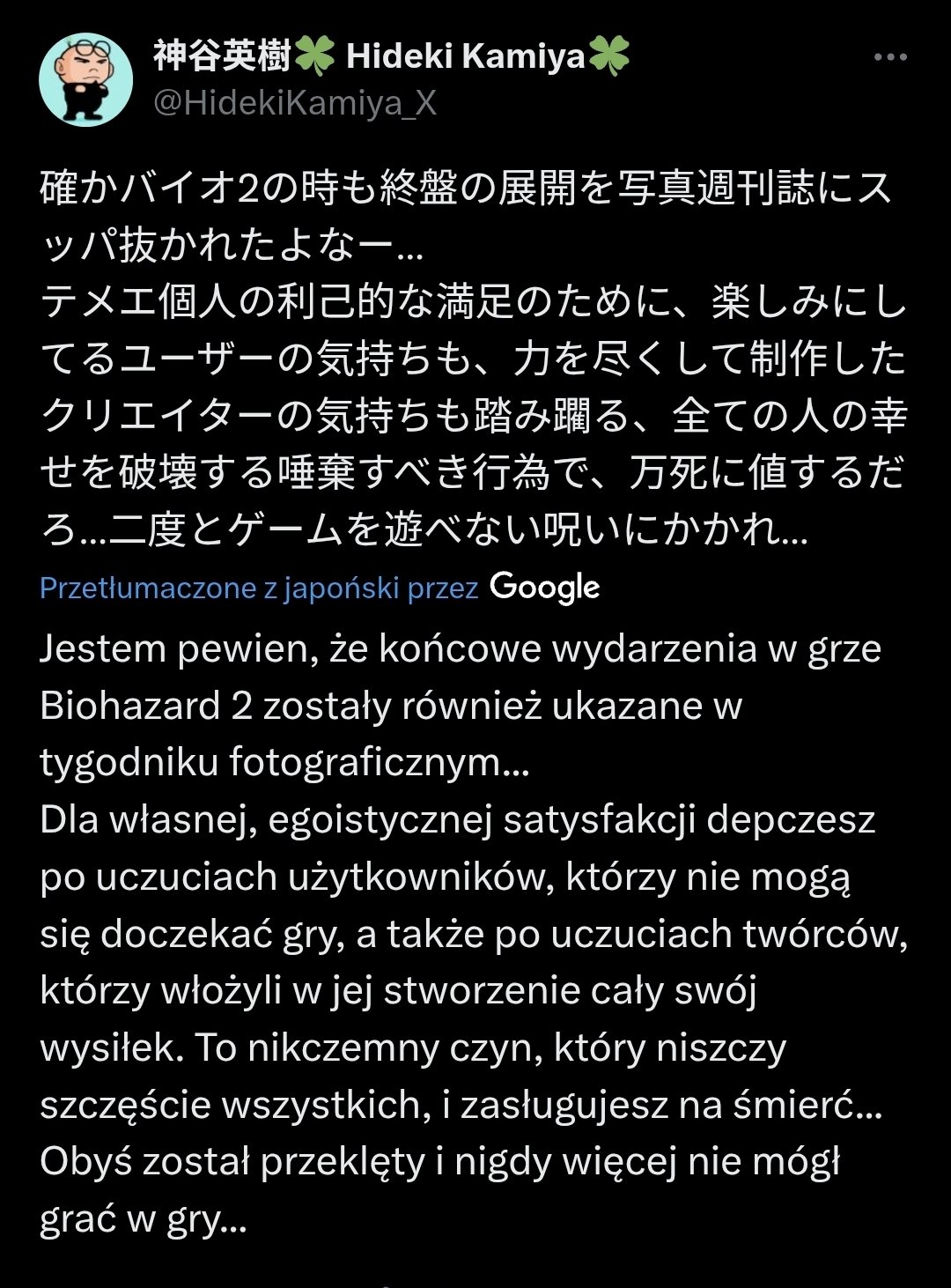 4 ostatnie dni chłopcy, wytrzymajmy Urlop klepnięty, jeszcze mieszkanie posprzątać i uprasować garnitur i można grać. A Hideki Kamiya pięknie wyjaśnia spoilerowców i życzy im śmierci xd
