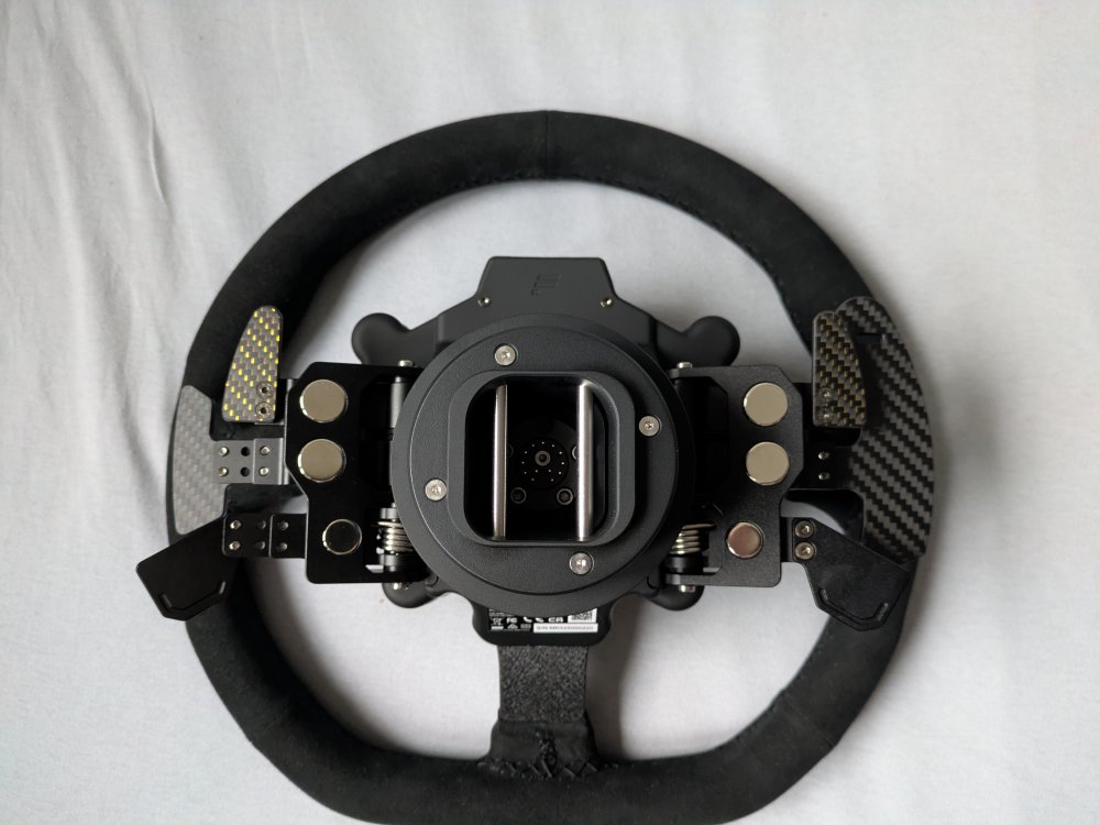 Korzystając z grudniowych promocji kupiłem pod rajdy kierownicę BMW GT2 plus dorzuciłem mod - shiftery od Simube, połowa ceny oficjalnych od Fanateca, a jakość podobno identyczna (przynajmniej tak twierdzą ludzie co mają oba warianty) Jakość wykonania faktycznie super, montaż plug&play. Troszkę pokombinowałem z ustawieniami prawego analogu żeby łatwo było sięgać do ręcznego i generalnie jest bardzo spoko, łatwo nim operować przy skręcie kierownicy z czym miałem duży problem próbując sięgnąć do przycisku na kierownicy. Niesymetrycznie wygląda lewa i prawą strona ale operuje się dobrze. A sama kierownica moim zdaniem troszkę za szeroka. Może kwestia że już się przyzwyczaiłem do kierownicy F1 co ma 27cm, ale dodanie tych 5cm szerokości sprawiło że FF był prawie nieodczuwalny (grałem na 100% w kierownicy i 60% w grze, w moim przypadku ACC), do tego kontry takie trochę mułowato się zakłada. Przy małej kierownicy była fajna ostrość reakcji, tu jest trochę takie wszystko spowolnione. Idzie się przyzwyczaić, ale pewnie do ACC czy ogólnie wyścigów będę używał kierownicy F1, tą okrągłą zostawię do rajdów. Czekam jeszcze na mod do pedałów od 3DRap, bo niestety musiałem zrezygnować z load cell, a feeling zwykłego hamulca po graniu jakiś czas z LC jest bardzo słaby. Na cuda nie liczę, ale może odrobina progresji coś poprawi sytuację pod nieobecność LC.