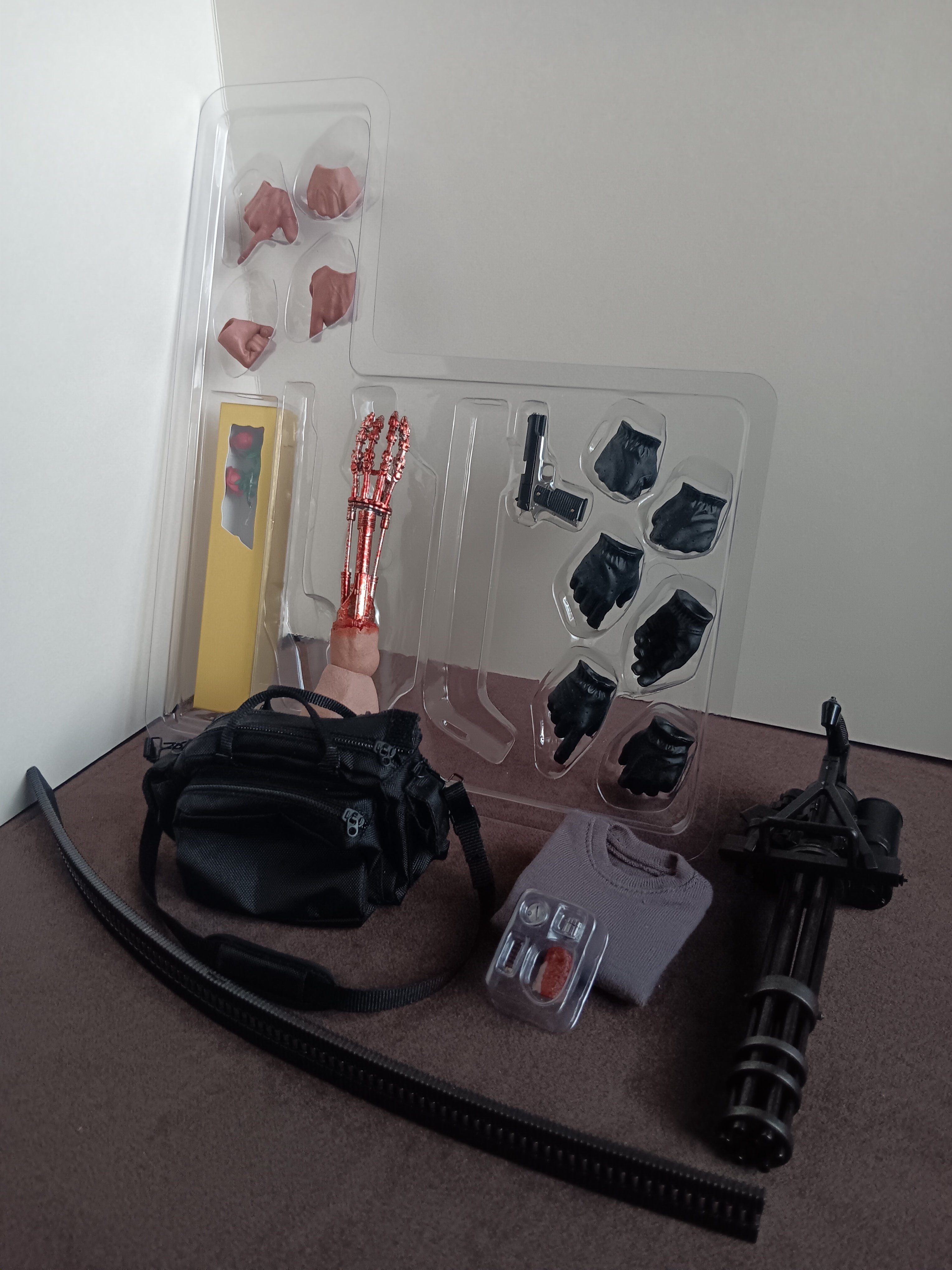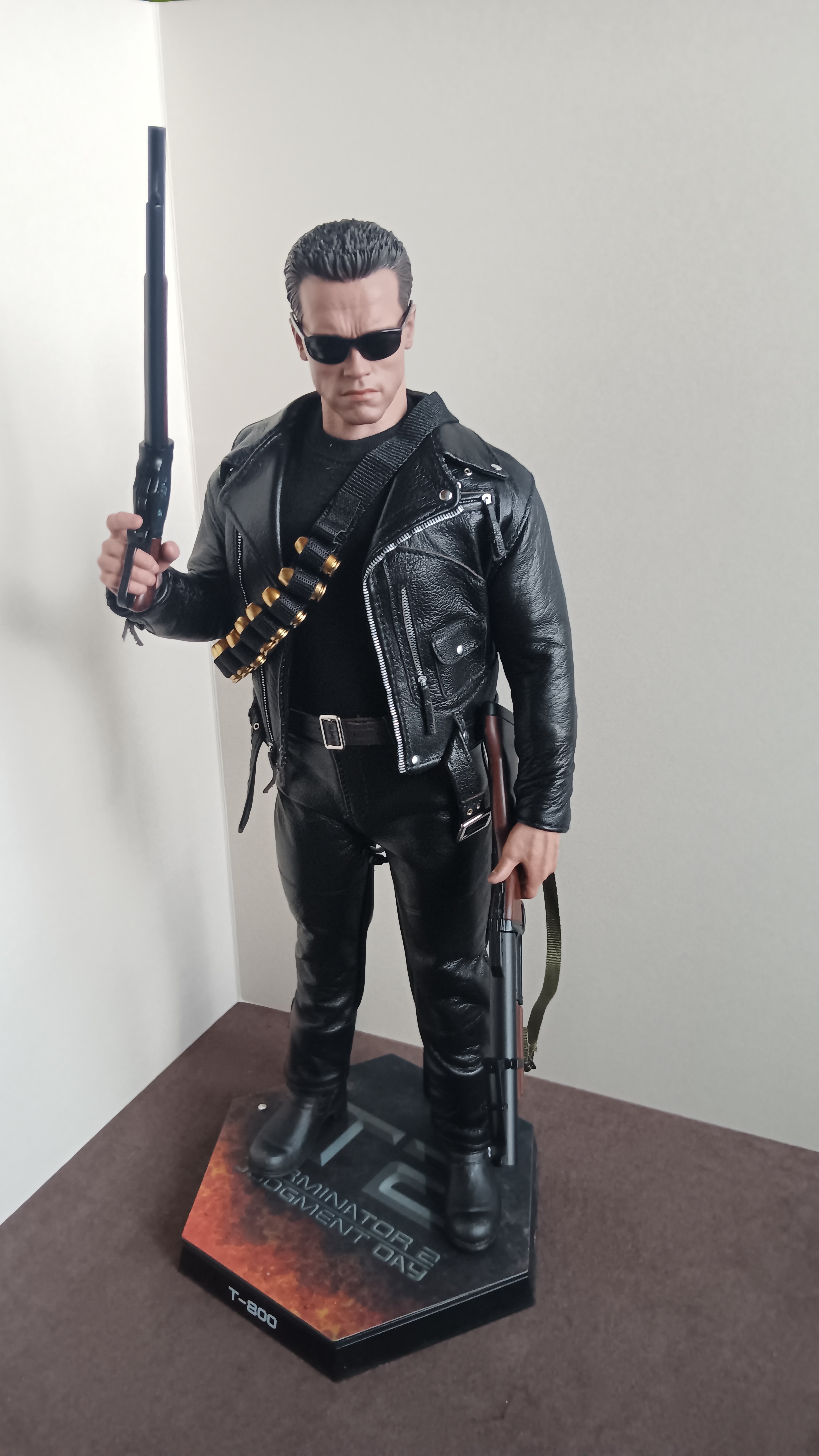 Hasta la vista, baby Jest i on. Długo oczekiwany (trzeba było brać u chińczyka, byłby wcześniej) T-800 od Hot Toys. Co tu dużo mówić. Dołożyli do pieca. Filmowego T2 uwielbiam, więc Arnold musiał zagościć na mojej półce obok Rambo czy Johna Wicka. Detale rozpier.alają, choć można się czepić przegubów. Wiadomo, skórzana kurtka (śmierdzi i "skrzypi") ogranicza trochę artykulację, ale kultowe pozy da się bez trudu odtworzyć. Jest minigun, Winchester, pas z pociskami do granatnika, czy nawet ręka ukazująca endoszkielet i koszulka na zmianę. Nie zabrakło rzecz jasna ciemnych okularów, +800 do zajebistości. No i zestaw do operacji "mózgu". Fotka jak zwykle nie oddaje, a głowa tylko na niej wygląda na za dużą. W gierkowej skali- 10/10.
