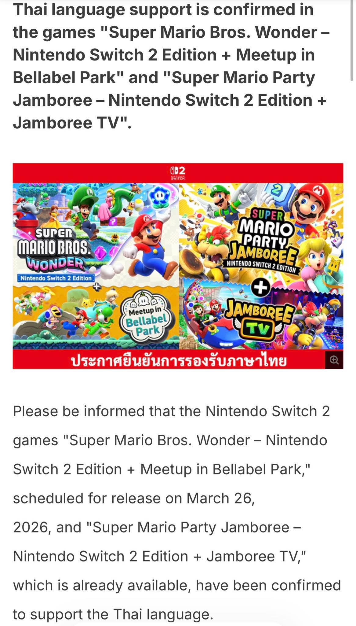 Tajski wszedl razem z nami z jezykiem na Switcha 2 i wpadlo u nich potwierdzenie latki jezykowej w Super Mario Party Jamboree z DLC w wersji na S2. U nas moze byc podobnie
