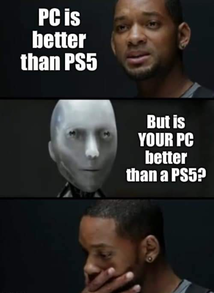 Ale konsolowiec z bazowym PS4 też nie gra w 4K/30fps, a jest konsolowym użytkownikiem PlayStation. Jak konsolowcy chwalą się grafiką, to piszą o PS5, a jak użytkownikami w porównaniu z pecetowcami, to podają pełną liczbę użytkowników Sony. Oczywiście w przypadku PC to musi być 4K/60FPS i suwaki max w prawo, na konsoli może być skalowane 4K/30FPS, ustawienia grafiki nieistotne. No ja też już kończę, bo za dużo tego, a nie ma sensu powtarzać się na milion sposobów.- Steam Machine