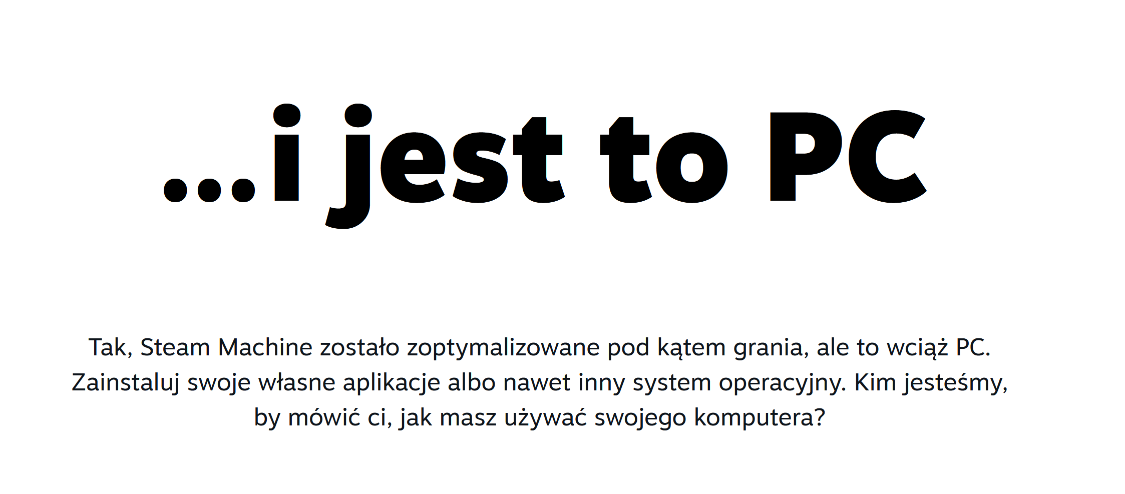 Casualowi to może wystarczać, że: małe, postawisz pod TV, wygląda jak konsola, obsługuje się jak konsolę, odpala tanie pecetowe gierki, nie trzeba się bawić w składanie PC/dobieranie komponentów, nie wymaga abonamentów do rozgrywki sieciowej. Xboksów w marketach nie ma i długo nie będzie, a Valve zamiast wydajnego sprzętu premium, za premium cenę, postawiło na kompromis, będący w zasięgu "każdego", kto myśli o konsoli. Jak już wyjdzie nowy Xbox, to Valve wypuści jako wariant dla chętnych coś mocniejszego. Mają czas, żeby sobie nad tym popracować, a w międzyczasie premiera przed startem MS. Ciekawe, czy to będzie dostepne powszechnie w marketach, jakoś reklamowane pod Janusza, bo warto byłoby wykorzystać tę sytuację z Xboksami. Jak nie pyknie, to Steam nic nie straci, ale dla MS nie będzie to najlepszy prognostyk, biorąc pod uwagę wyższą cenę.