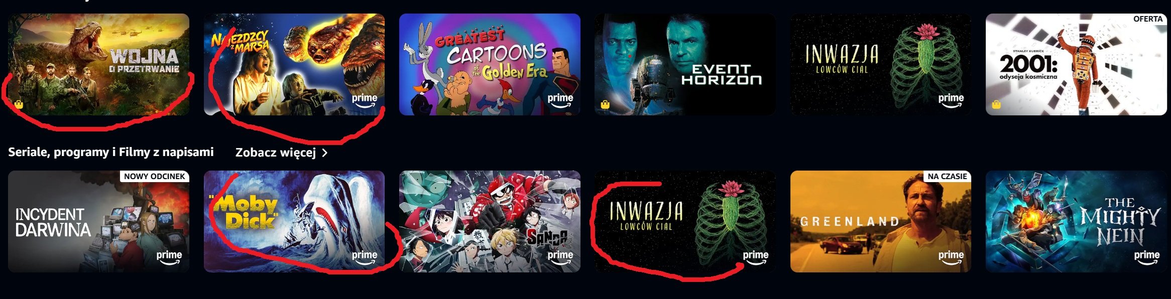 PrimeVideo: ależ zaskoczonko... przynajmniej dla mnie: ,,Moby Dick". Z drugiej strony, trochę kicha, czyli taka moja prywatna plama na geekowskim honorze, że dopiero teraz zauważyłem, że takie klasyki (a to dopiero początek!), jak ten przygodowo-dramatyczny obraz z lat 50-tych... oferuje nam w ,,abo" Prime. Druga dziwność, i to pozytywna: za 15zł w opcji wypożyczonka jest film Wojna o Przetrwanie - oczywicha, że w jakości UHD i systemach Dolby etc. Oglądał ktoś z Was tą ,,Wojnę o Przetrwanie"?