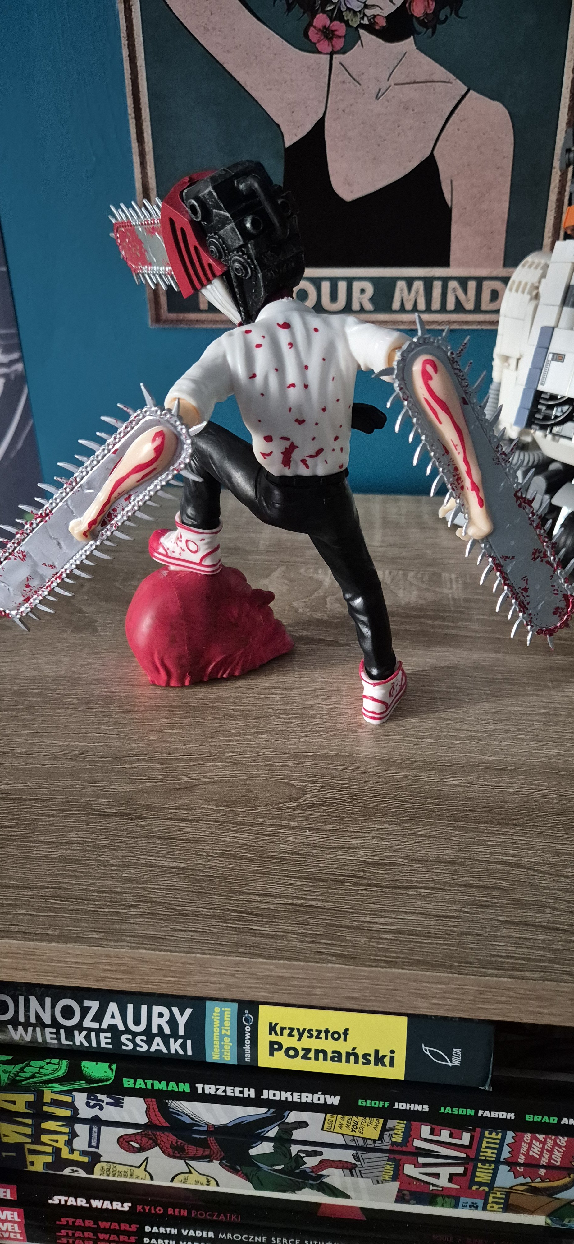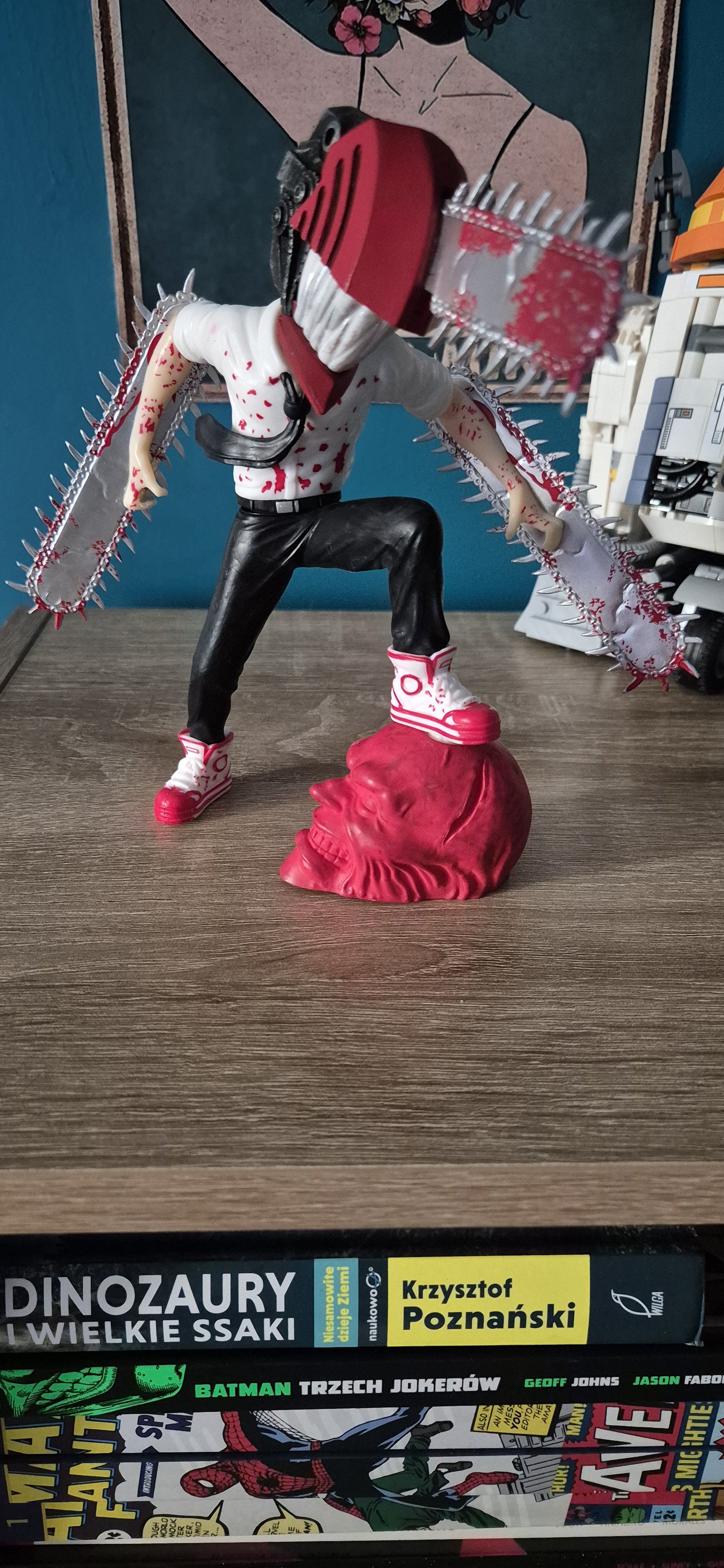 ,,Veni, vidi, vici"... skromnie, ale - jak dla mnie satysfakcjonująco i skutecznie dla zaspokojenia tymczasowego figurkowego głoda - i tak nieźle zważywszy na wydawaną ostatnio mamonę na różne różności i pasje, sport etc. Tak, wpadła mi do kolekcji stylowa, w miarę solidnie wykonana, skromna w ,,przerysowanej" kreacji figurka Denjiego z Uniwersum anime i mangi: ,,Chainsaw-Man". Wysokość do 17-18 cm, szerokość około 10-12cm. Nie ma to tamto, mi ta inność w takiej figurkowej konfiguracji Denjiego, się po prostu podoba! Bang!
