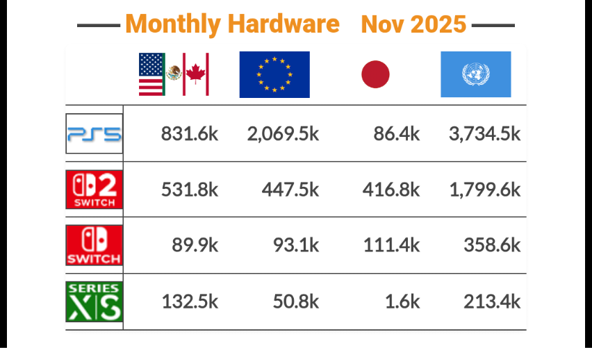 Ale widać na tabelkach wszędzie gołym okiem, jak chłodno wygląda sytuacja Switcha 2 poza krajem wiśni.